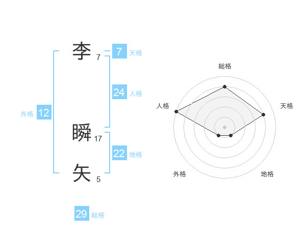李 瞬矢さんの総格は29画の4点!