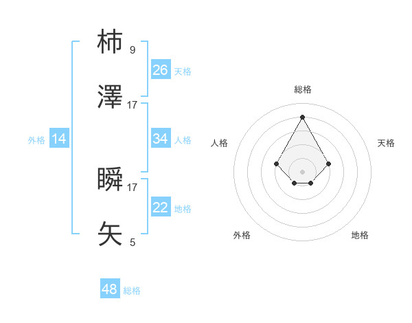 柿澤 瞬矢さんの総格は48画の4点!