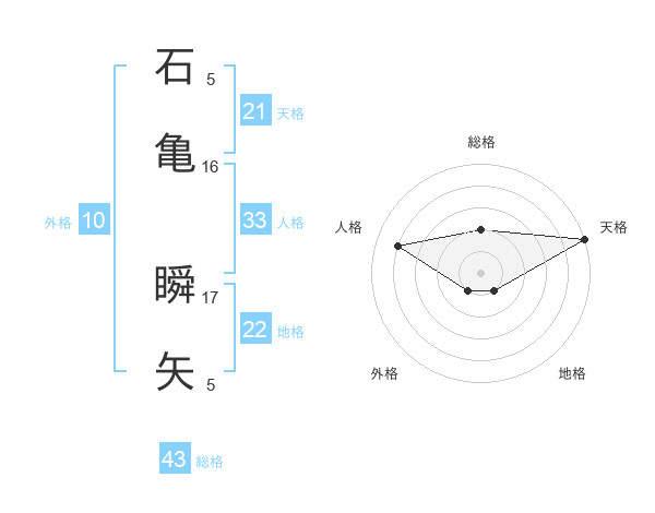 石亀 瞬矢さんを姓名の画数から五運を鑑定