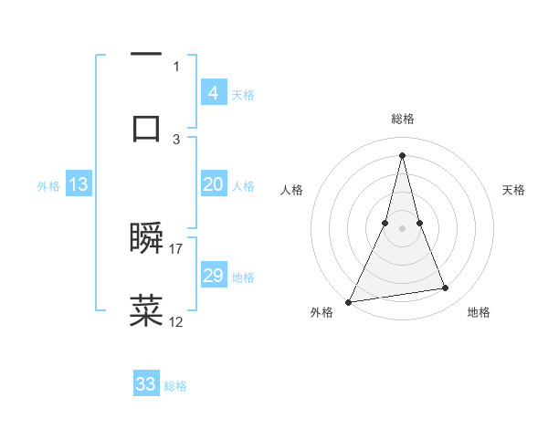 一口 瞬菜さんを姓名の画数から五運を鑑定