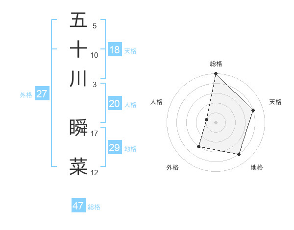 五十川 瞬菜さんを姓名の画数から五運を鑑定