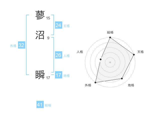 蓼沼 瞬さんを姓名の画数から五運を鑑定