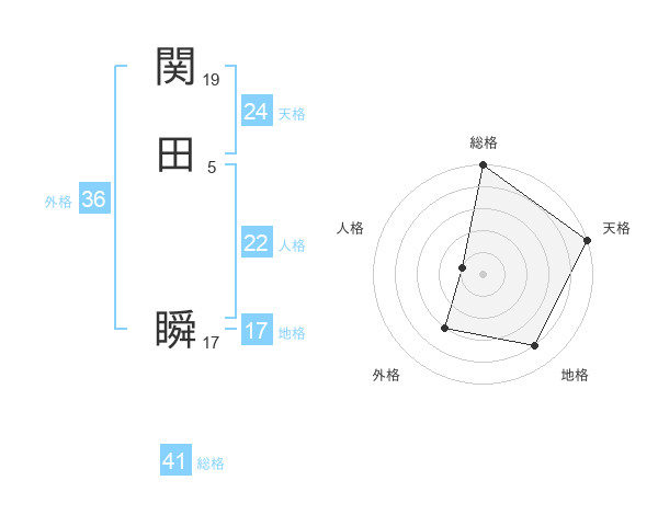 関田 瞬さんの天格は24画の5点!
