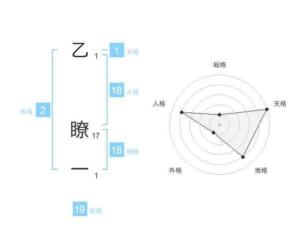 乙 瞭一さんの天格は1画の5点!