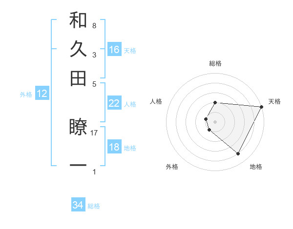 和久田 瞭一さんの天格は16画の5点!