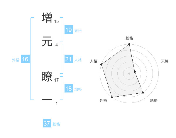 増元 瞭一さんの総格は37画の5点!