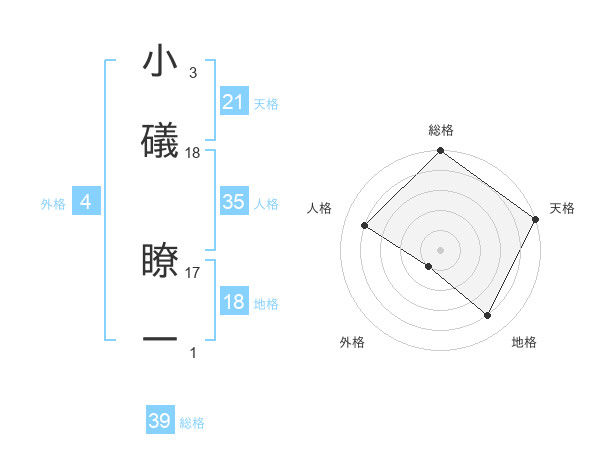 小礒 瞭一さんの総格は39画の5点!