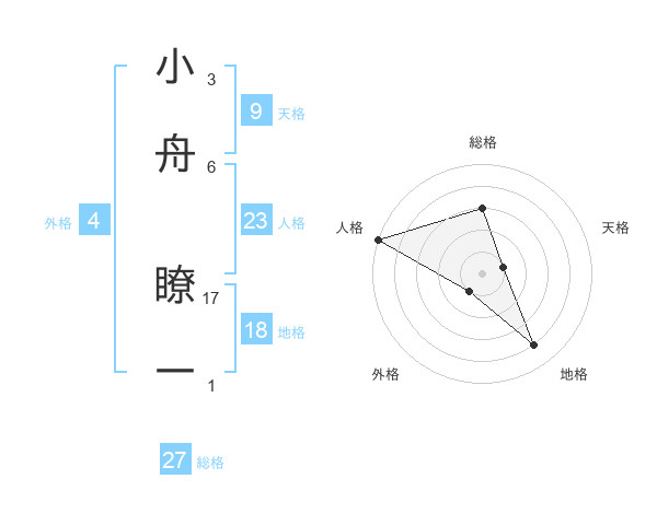 小舟 瞭一さんの総格は27画の3点!