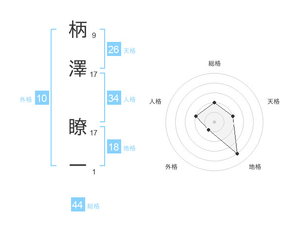 柄澤 瞭一さんの総格は44画の2点!