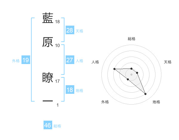 藍原 瞭一さんを姓名の画数から五運を鑑定