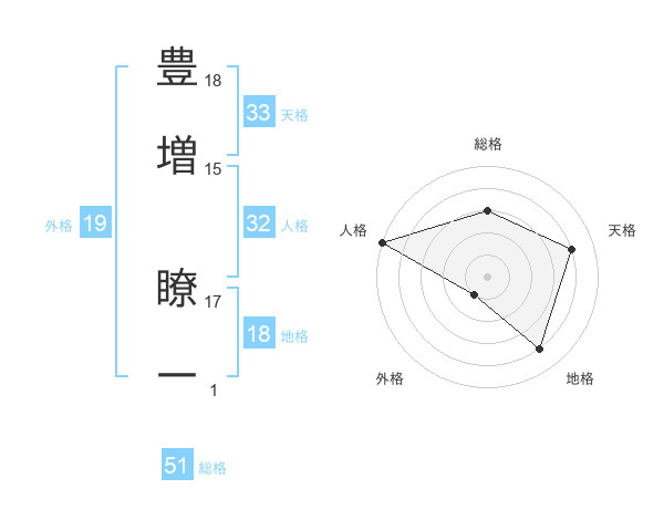 豊増 瞭一さんを姓名の画数から五運を鑑定