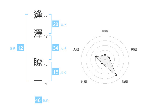 逢澤 瞭一さんの総格は46画の1点!