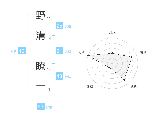 野溝 瞭一さんの天格は25画の4点!