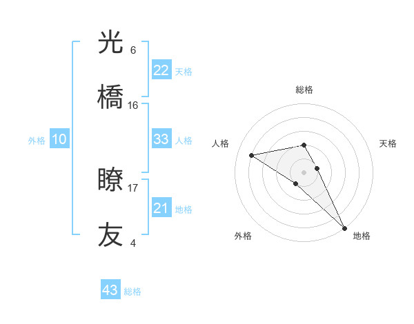 光橋 瞭友さんの総格は43画の2点!
