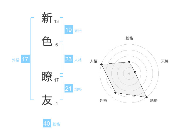 新色 瞭友さんを姓名の画数から五運を鑑定