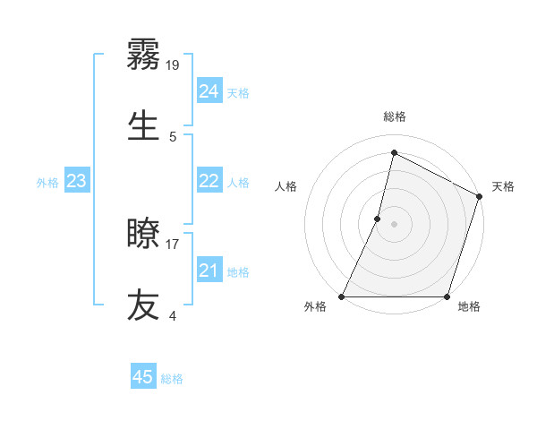 霧生 瞭友さんを姓名の画数から五運を鑑定