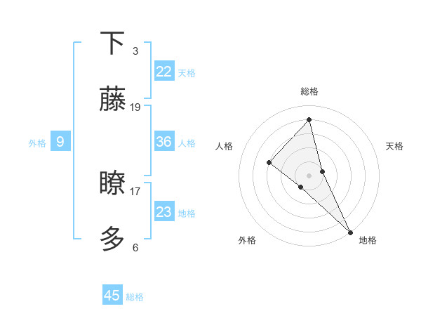 下藤 瞭多さんの総格は45画の4点!