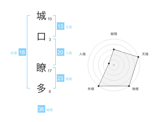 城口 瞭多さんの天格は13画の5点!