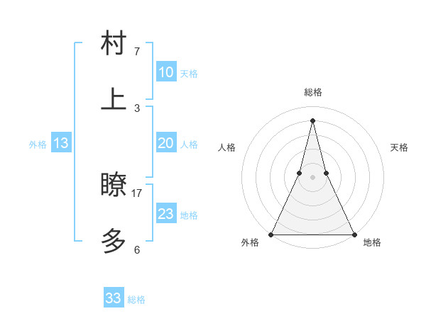 村上 瞭多さんの総格は33画の4点!