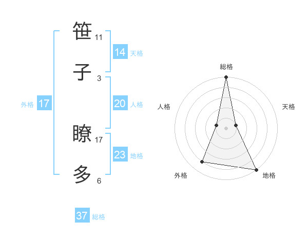 笹子 瞭多さんを姓名の画数から五運を鑑定