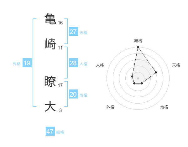 亀崎 瞭大さんの総格は47画の5点!