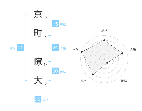 京町 瞭大さんの天格は15画の4点!