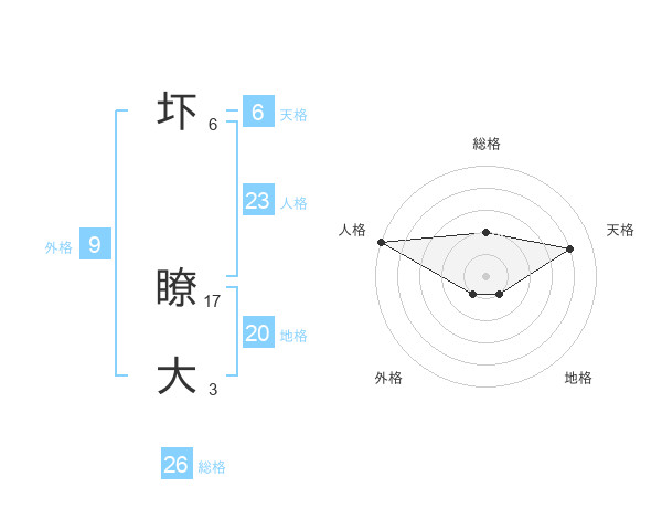 圷 瞭大さんの地格は20画の1点!
