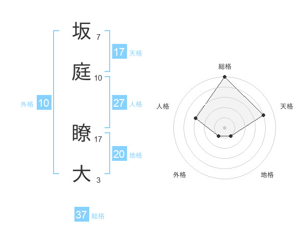 坂庭 瞭大さんの総格は37画の5点!
