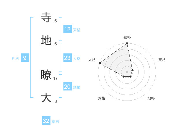 寺地 瞭大さんの総格は32画の5点!