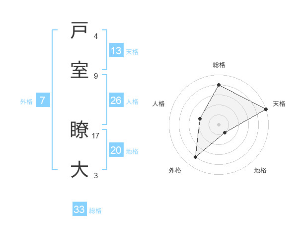 戸室 瞭大さんの天格は13画の5点!
