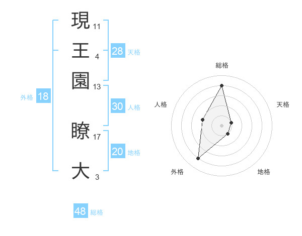現王園 瞭大さんを姓名の画数から五運を鑑定