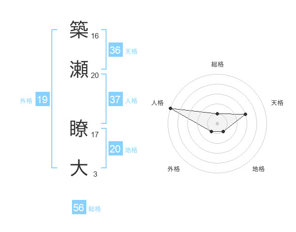 築瀬 瞭大さんの地格は20画の1点!