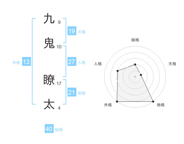 九鬼 瞭太さんを姓名の画数から五運を鑑定