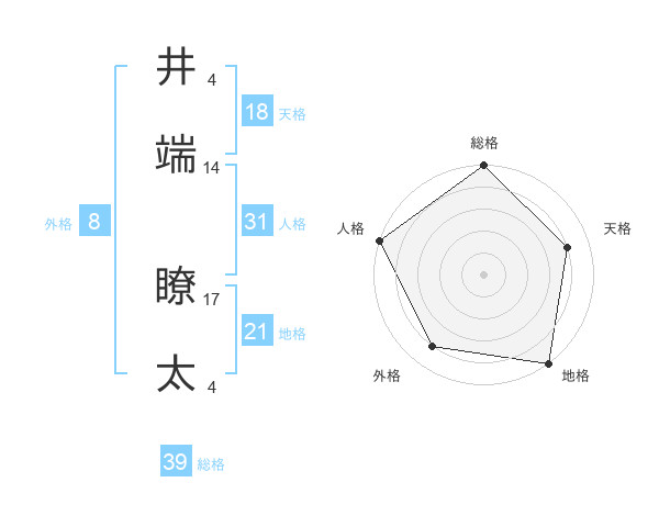 井端 瞭太さんの天格は18画の4点!