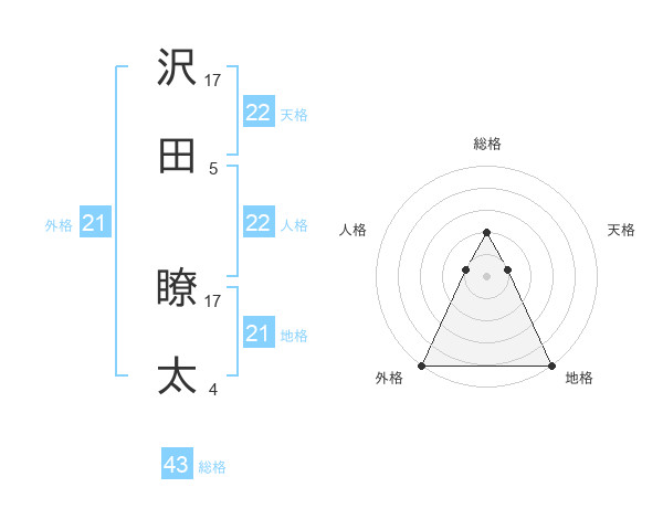 沢田 瞭太さんを姓名の画数から五運を鑑定