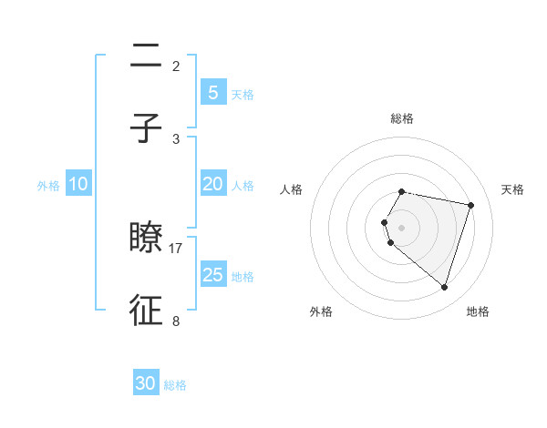 二子 瞭征さんを姓名の画数から五運を鑑定