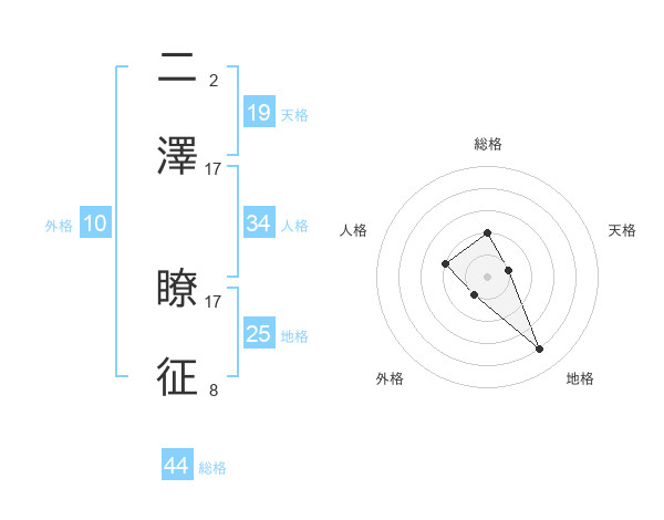 二澤 瞭征さんを姓名の画数から五運を鑑定