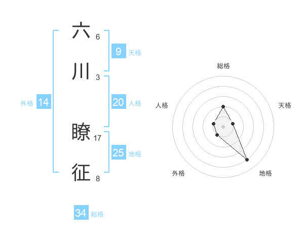 六川 瞭征さんの総格は34画の2点!