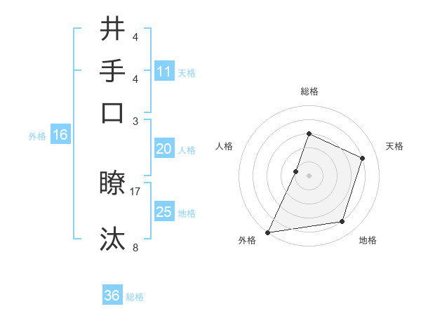 井手口 瞭汰さんを姓名の画数から五運を鑑定