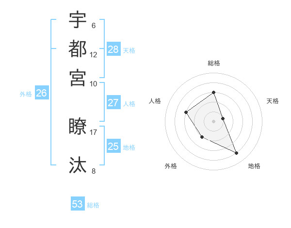 宇都宮 瞭汰さんを姓名の画数から五運を鑑定