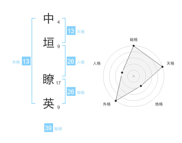 中垣 瞭英さんを姓名の画数から五運を鑑定