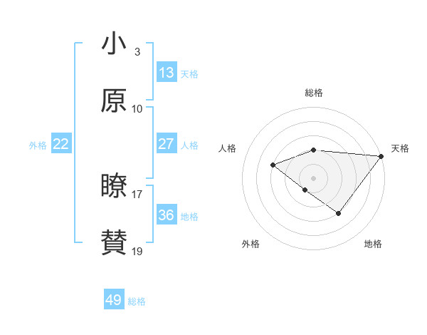 小原 瞭賛さんを姓名の画数から五運を鑑定