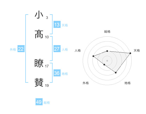 小髙 瞭賛さんを姓名の画数から五運を鑑定