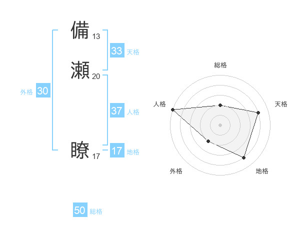 備瀬 瞭さんを姓名の画数から五運を鑑定