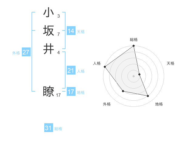 小坂井 瞭さんの総格は31画の5点!