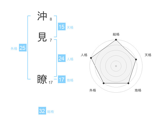 沖見 瞭さんを姓名の画数から五運を鑑定