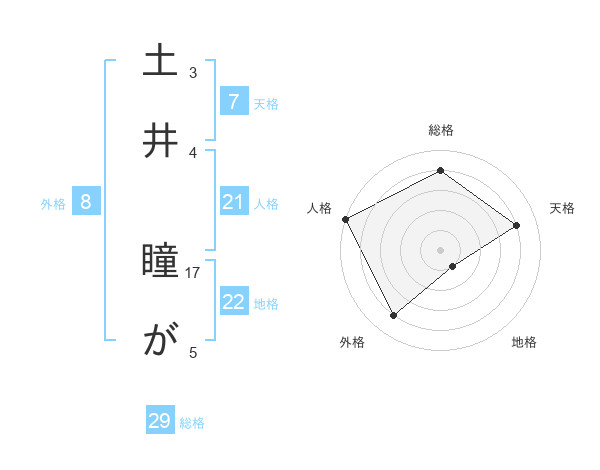 土井 瞳がさんを姓名の画数から五運を鑑定