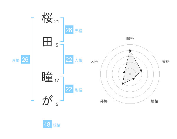 桜田 瞳がさんの天格は26画の2点!