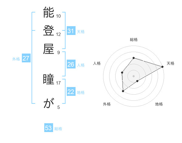 能登屋 瞳がさんを姓名の画数から五運を鑑定