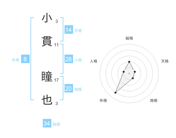 小貫 瞳也さんを姓名の画数から五運を鑑定